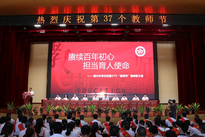 当天下午3点,恒兴中学铁铮大礼堂座无虚席,伴随着庄严的国歌声,庆祝教师节暨表彰大会拉开序幕。大会表彰了2020-2021学年度“三十佳教师”、“优秀教师”、“优秀班主任”、“优秀员工”、“优秀共产党员”,校董会颁发了中高考奖教金。