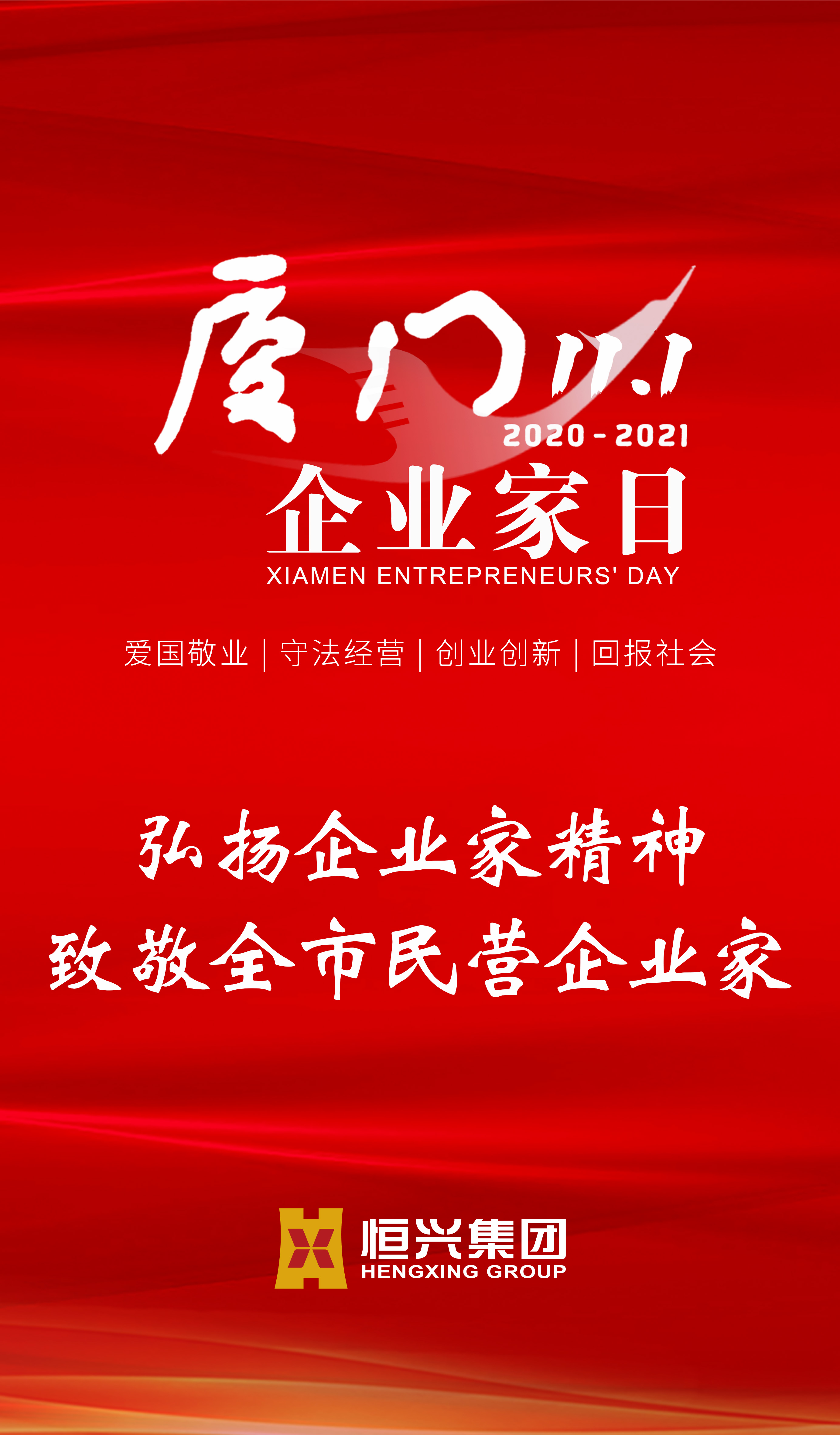 去年10月,厦门市人大常委会通过决定每年11月1日设立为“厦门企业家日”,以城市之名义致敬企业家,弘扬企业家精神。值此厦门经济特区建设40周年,厦门企业家日的到来倍添异彩。