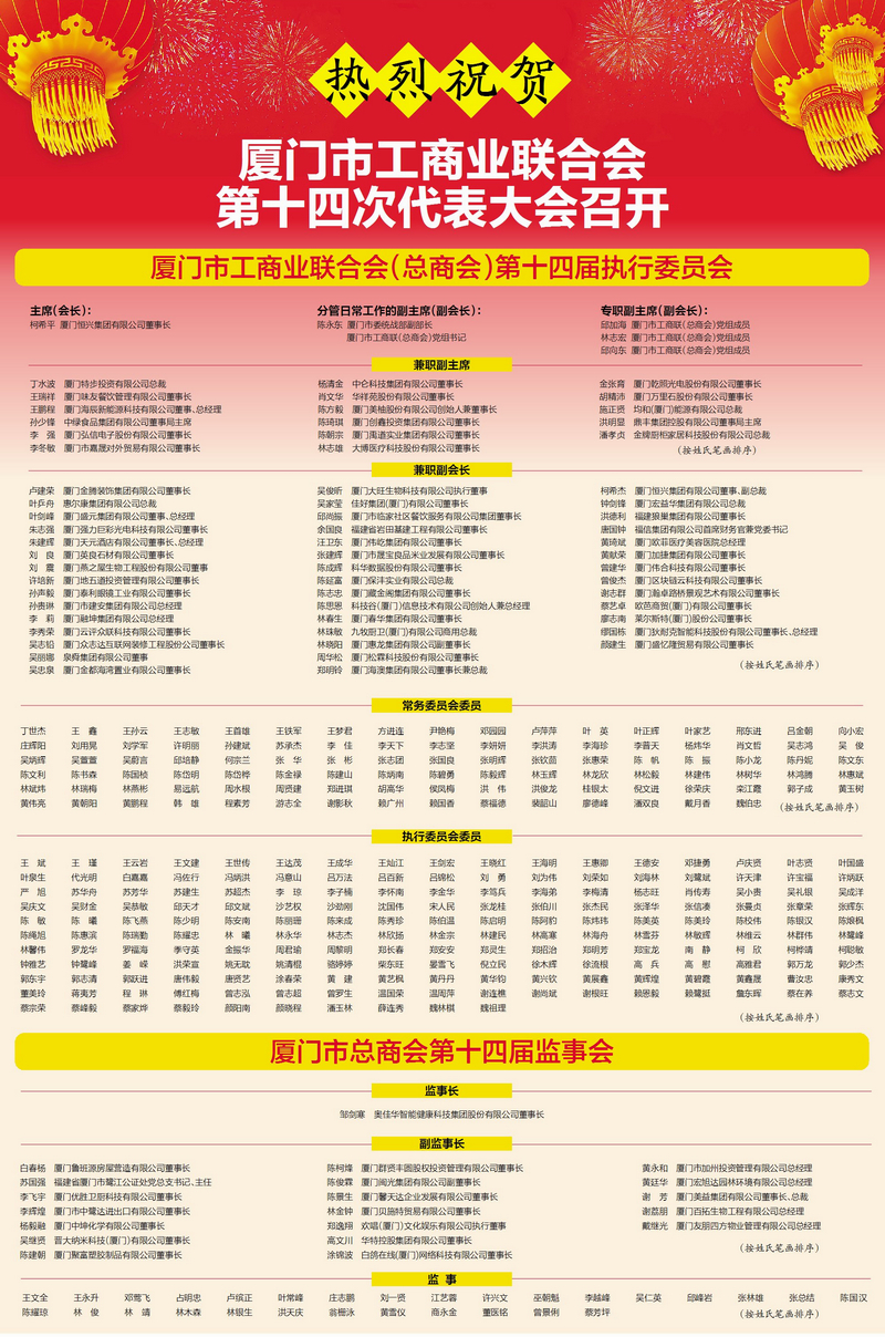 会议选举产生厦门市工商业联合会(总商会)第十四届执行委员会、厦门市总商会第十四届监事会组成人员,环球ug官网董事长柯希平连任主席(会长),奥佳华集团董事长邹剑寒当选监事长。